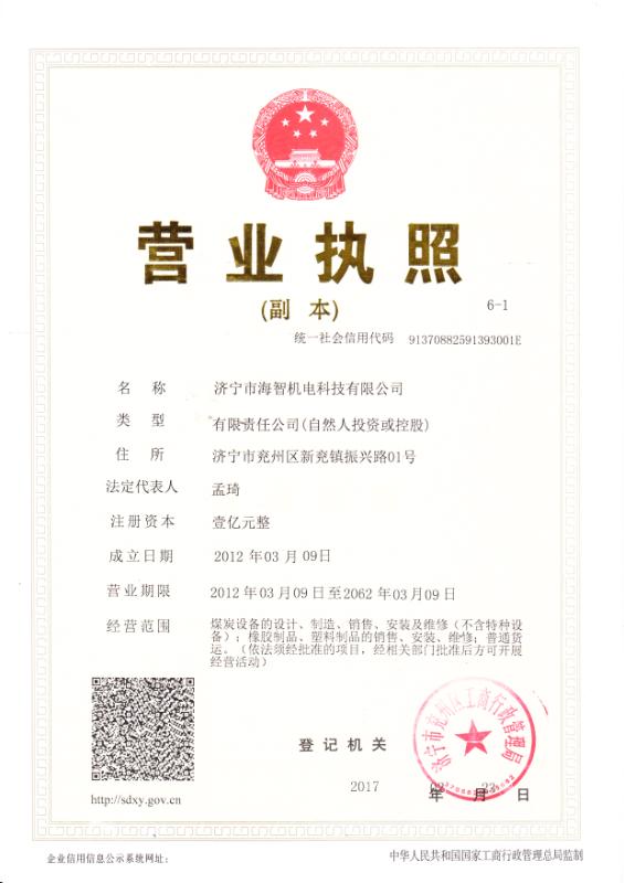 濟(jì)寧市海智機(jī)電科技有限公司,簡(jiǎn)稱(chēng)海智機(jī)電,長(zhǎng)期為礦業(yè)提供高技術(shù)、高質(zhì)量、高效率的機(jī)、電、液設(shè)備的研發(fā)、制造、銷(xiāo)售、售后一體化服務(wù)。海智機(jī)電已通過(guò)ISO9001質(zhì)量體系認(rèn)證、ISO14001環(huán)境管理體系認(rèn)證、ISO45001職業(yè)健康安全管理體系認(rèn)證,是高新技術(shù)企業(yè),獲80多項(xiàng)榮譽(yù)稱(chēng)號(hào),公司先后被山東省科技廳授予“中國(guó)專(zhuān)利山東明星企業(yè)”、“山東省高新技術(shù)企業(yè)”,被濟(jì)寧市政府授予“濟(jì)寧市十佳科技小巨人”、“濟(jì)寧市百?gòu)?qiáng)民營(yíng)企業(yè)”,被兗州市政府授予“優(yōu)秀民營(yíng)企業(yè)”,被兗州市科技局授予“兗州市科技工作先進(jìn)企業(yè)”等榮譽(yù)稱(chēng)號(hào),被全國(guó)企業(yè)征信系統(tǒng)評(píng)價(jià)為AAA級(jí)企業(yè),被信用中國(guó)評(píng)為A級(jí)納稅人,被百度企業(yè)信用、企業(yè)實(shí)力全國(guó)范圍內(nèi)評(píng)價(jià)為優(yōu)秀企業(yè)。